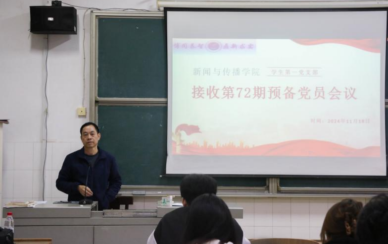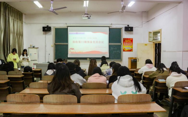 2024年11月18日,ok138cn太阳集团古天乐学生第一党支部接收预备党员会议于文科楼A609顺利召开。本次会议由学生第一党支部组织委员曾雨恬主持,ok138cn太阳集团古天乐党总支书记彭晖、党总支副书记董自雄、学生第一党支部书记刘国杰出席,学生第一党支部全体学生党员、发展对象及其入党介绍人参会。