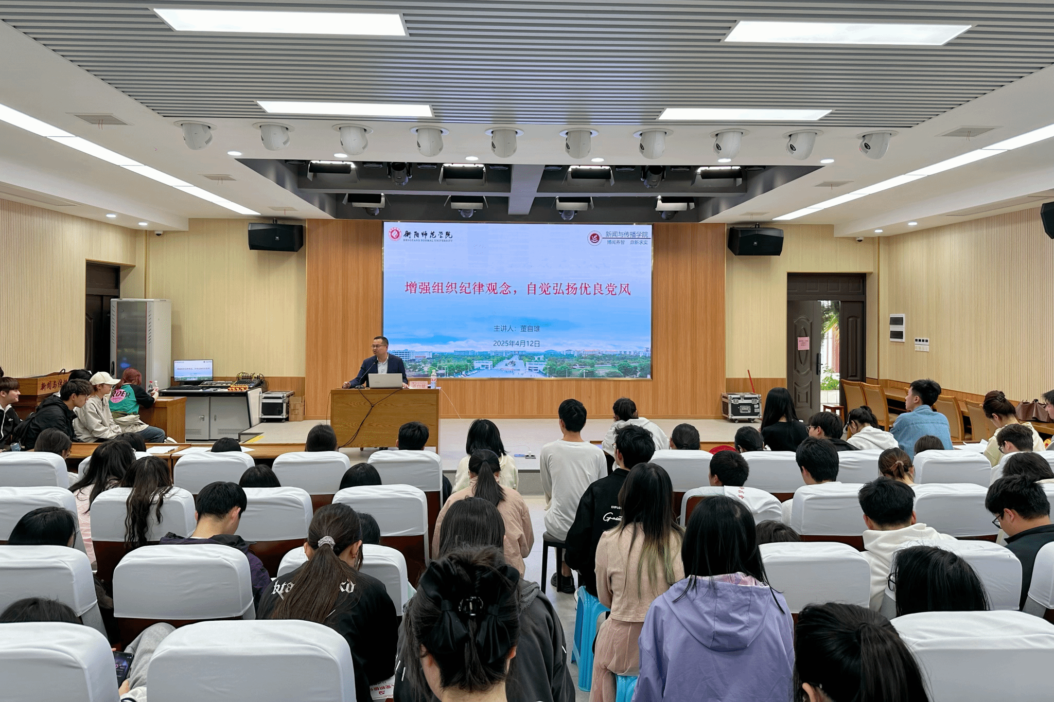 2025年4月12日,ok138cn太阳集团古天乐开展“增强组织纪律观念,自觉弘扬优良党风”党课培训。本次会议由我院党总支副书记董自雄担任主讲人,我院第71期全体入党积极分子到场聆听。
