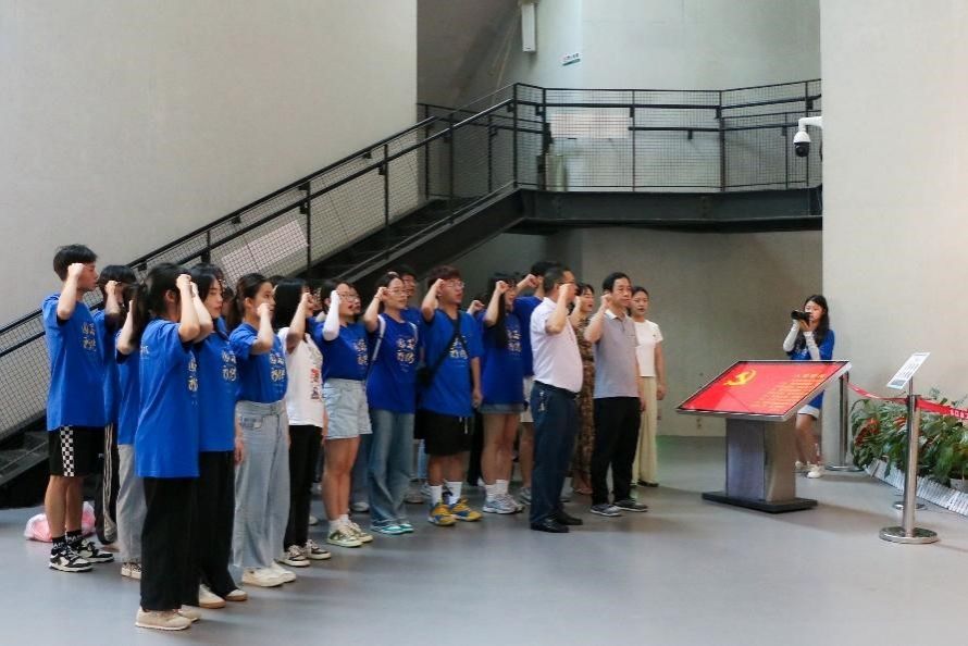 “我志愿加入中国共产党,拥护党的纲领,遵守党的章程,履行党员义务,执行党的决定,严守党的纪律……”我院党总支书记彭晖、党总支副书记董自雄、学生第一党支部支部书记张瑶,学生第二党支部支部书记封伟为带领全体学生党员在纪念馆入口处的大型工人运动浮雕下重温入党誓词,号召全体党员牢记党的初心使命,增强斗争本领,做党和人民的忠诚守护者。